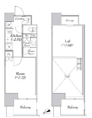 間取り | 1 K+1 バス+Loft |