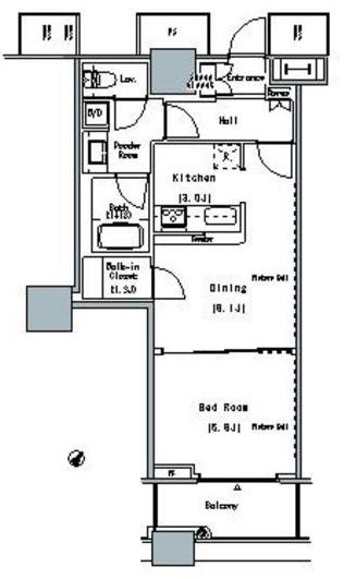 | 間取り | 1 DK+1 バス |