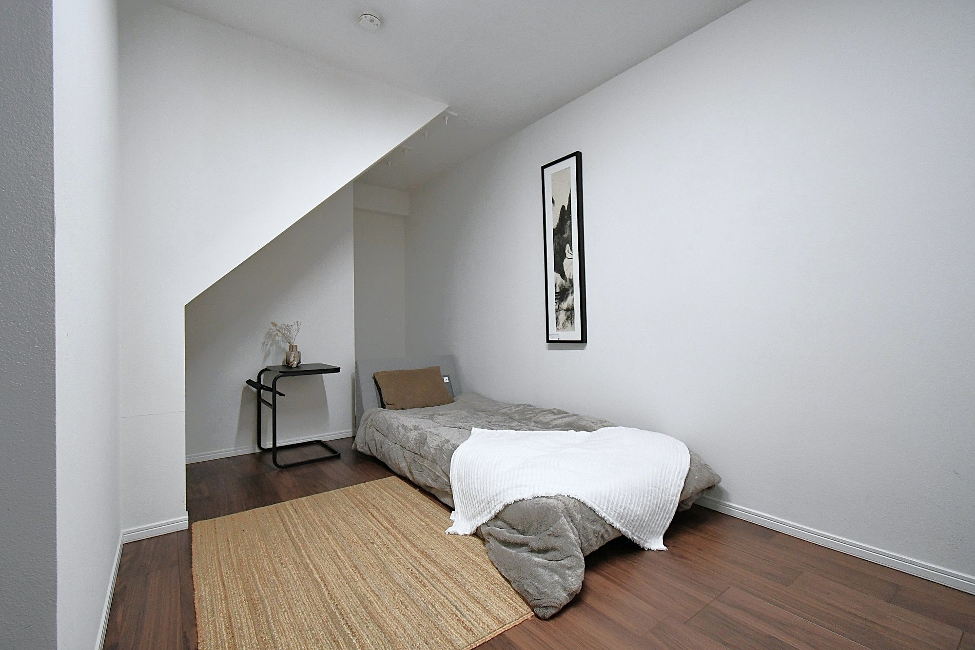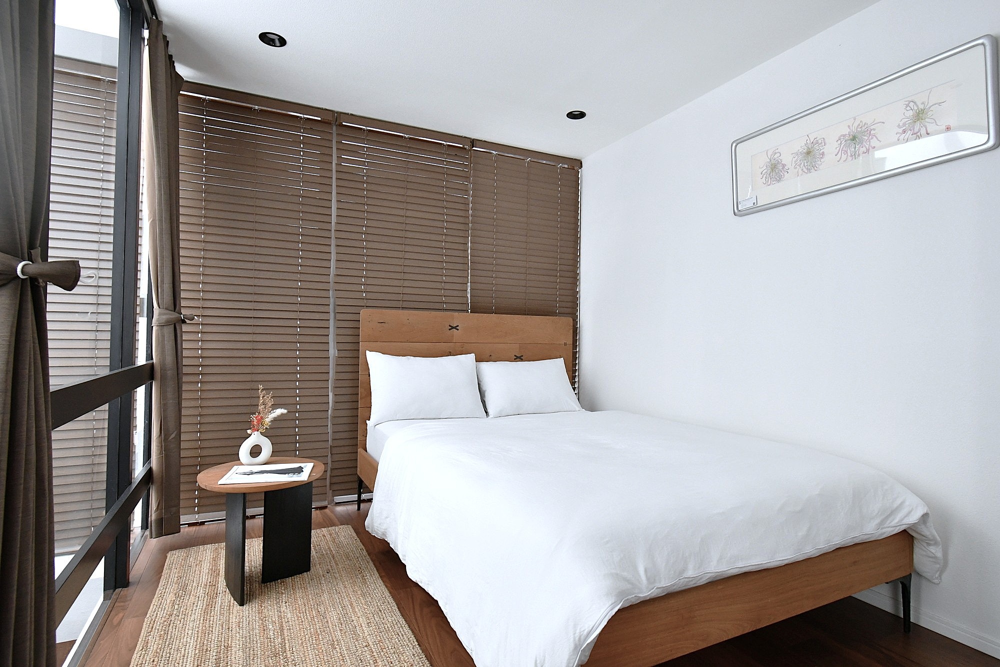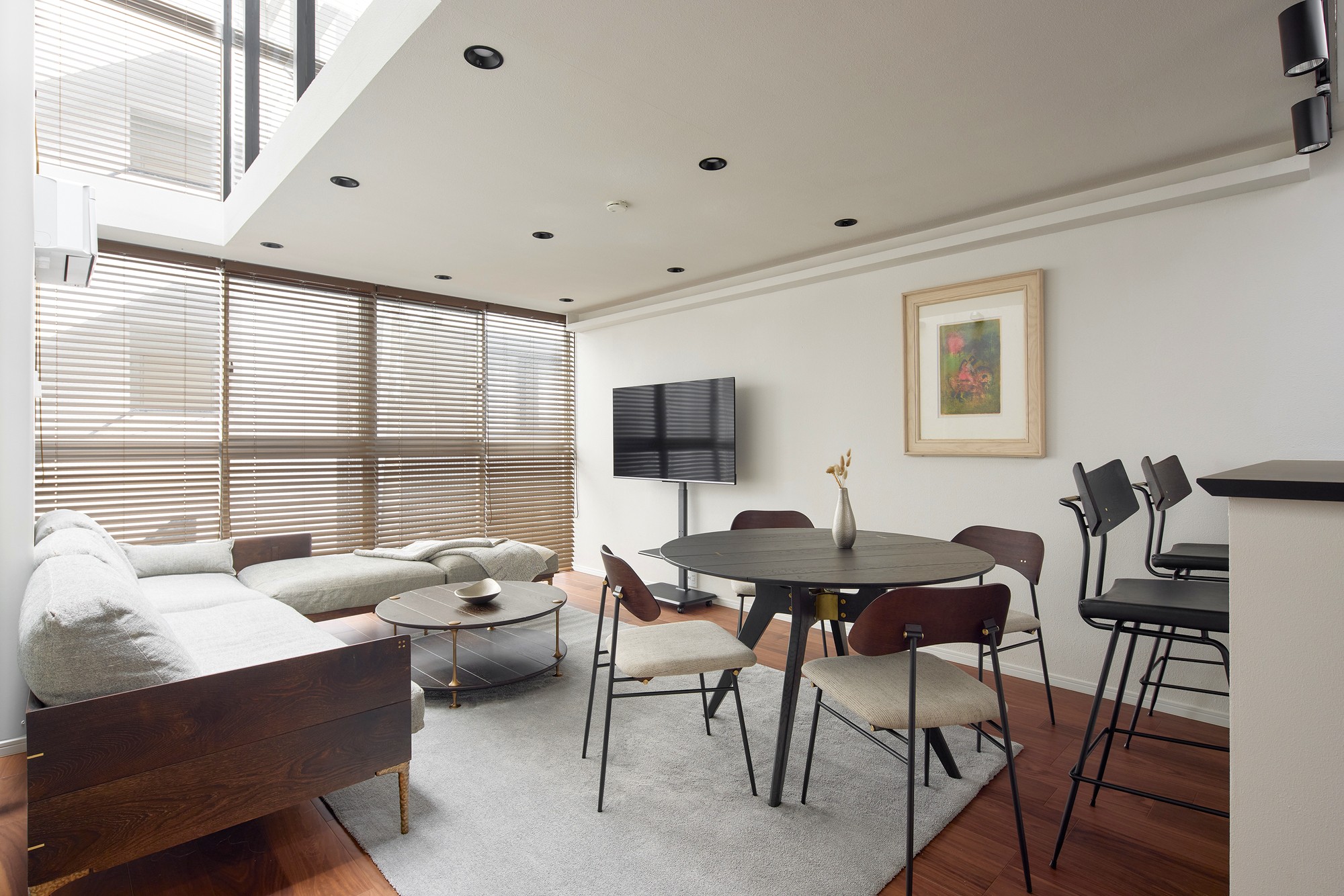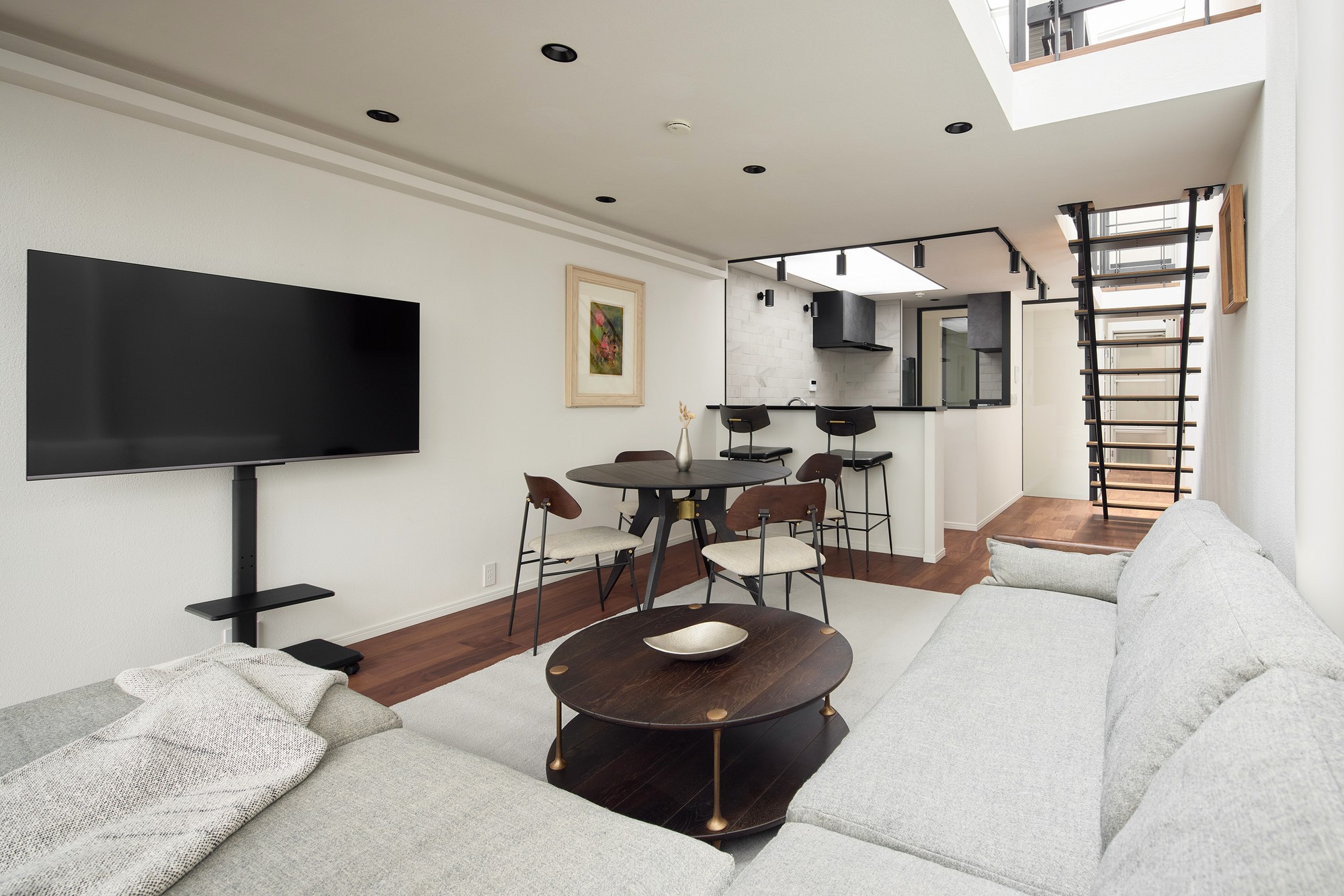 木の床、フローティング階段、そして清潔感のある白い壁が、落ち着きのあるモダンな雰囲気を醸し出し、ゆっくりとした暮らしを演出します。